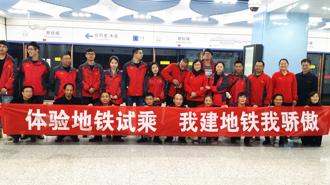 3月,苏州轨道交通4号线及支线通过了试运营评审,正式具备了试运营条件,从3月25日至29日开启了为期五天的“万人试乘”活动。公司4号线5标参与修建了其中的察院场站,通常员工在项目完工后便辗转到其他城市,没机会坐上自己曾修建的地铁,但项目部抓住机会,开展了此项地铁试乘活动。在察院场站,从4号线5标来我项目部的老员工向好奇的新员工们介绍了我们修建的底板、站台板等,讲述施工过程中的酸甜苦辣。大家拉起“体验地铁试乘我建地铁我骄傲”的横幅,自豪地在站内合影留念。