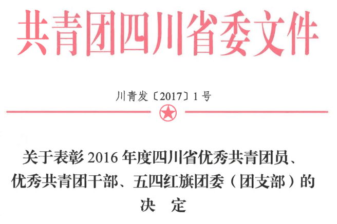 (通讯员 李东)近日,从共青团四川省委传来喜讯,公司团委喜获省共青团2016年度五四红旗团委荣誉。
